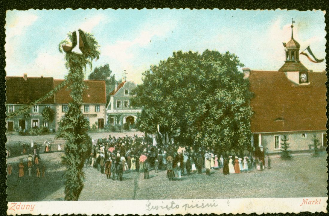 Wiele lat później okazało się, że pożar wywołał pachołek celników (obok była granica ze Śląskiem), który usnął z zapaloną fajką. Wtedy to zdecydowano się przenieść też niemiecki cmentarz. Mieszkańcy trzech miast zbudowali nowy kościół z cegły palonej, który stanął w 1792 r. Ślad pożaru został do dzisiaj, o czym świadczy tabliczka nad wschodnim wejściem: „Dzięki Bogu z popiołów odrodzony 1792”.). Kościół działał do 1945 r. potem służył jako magazyn. W latach 80. XX w. dzięki staraniom ówczesnego naczelnika zaczął pełnić funkcję domu pogrzebowego. W czasie II Wojny Światowej ucierpiał, o czym świadczą ślady po strzałach. Ratusz jest dziś wizytówką miasta. Tu warto przytoczyć znów Józefa Łukaszewicza, który mówił o ratuszach zdunowskich: „W dawnej Polsce najlichsza nawet mieścina, osadzona na prawie magdeburskim, miała swój ratusz”. Obecny ratusz jest ratuszem ze Zdun Niemieckich, o którym w dalszej części tekstu. Najstarszym ratuszem był ratusz Zdun Polskich mieszącym się w okolicy kościoła katolickiego. Cytując Łukaszewicza była to „(…) nędzna, mała budowa z drzewa, stał na środku tego miasta”. Powstał ok. XVI w. i został rozebrany na początku XIX w., gdyż groził zawaleniem. O ratuszu w Sieniutowie Łukaszewicz nie wspomina wiele, ale sądzi, że mógł zostać rozebrany po 1772 r. Po zjednoczeniu Zdun najważniejszym ratuszem został ten ze Zdun Niemieckich, pewnie dlatego, że prawie wiek wcześniej został zbudowany i był murowany. Pierwszy ratusz powstał po 1637 r. Niewiele o nim wiemy. Na jego miejscu stanął ratusz, który istnieje do dzisiaj. Powstał w 1684 r. i jest drugą najstarszą budowlą w mieście (a nawet w gminie, licząc w pełni zachowane). Najstarszą jest zbudowany 5 lat wcześniej dom, w którym według legendy miał rzekomo nocować Jan Kazimierz uciekający w czasie potopu szwedzkiego na Śląsk. Ratusz wyglądał nieco inaczej. Część zachodnia ratusza z kolumnami i włączona w niego wieża datowane są na 1684 r., dołączony do niego jakby inny budynek po stronie wschodniej pochodzi z początku XIX w. W wieży mieści się zegar z 1889 r. Ratusz od początku był siedzibą rady miejskiej najpierw Zdun Niemieckich, a potem połączonych części miasta, tak samo w czasie zaborów. W XIX-wiecznej dobudówce znajdowała się w poł. lat 20. XX. w. remiza strażacka. Niemcy rezydowali tu do 1942 r., a potem uczynili z ratusza areszt. W latach 1957 – 1981 była tam biblioteka miejska. Jeszcze dekadę temu ratusz był rzadko używany, ale pod koniec pierwszej dekady XXI w. umiejscowił się tam bank (później kwiaciarnia), kawiarnia i siedziba ośrodka kultury. Zduny są miastem, które mają największy w Wielkopolsce zespół zabudowymałomiasteczkowej. Mieści się tu 60 innych budynków z XVII – XIX w. Są to budynkuszachulcowe, drewniane i szkieletowo-gliniane. Warto dodać, że między XV w. a XVII w. istniał w Zdunach dwór, czyli rezydencja właścicieli i zarządców miasta. Znajdowała się w pobliżu kościoła katolickiego. Od 1400 r. istniała w Zdunach szkoła. W XVII w. znajdowała się między folwarkiem dworskim a budynkiem młyna na grobli. Warto dodać, że od XVII w. istniała również szkoła w Zdunach Niemieckich. Dodatkowo przy kościele katolickim w pierwszym okresie istnienia Zdun funkcjonował szpital. –W którym miejscu stał, wielu ubogich przytułek w nich znajdowało, nie wiadomo mi. Podobnież uposażenie jego. Księgi kościelne zdunowskiej wspominają tylko o małych dla niego legatach – pisał Józef Łukaszewicz. Istnieć musiał co najmniej do końca XVII w. W Zdunach istniała również strzelnica drewniana, która została wybudowana przez powstałe w 1667 r. kurkowe bractwo strzeleckie (ustanowionego przez króla Jana Kazimierza na prośbę właściciela Krzysztofa Sieniuty). Bractwo istniało do wybuchu II wojny światowej i nigdy nie zostało reaktywowane, jak to było w modzie w innych miastach.